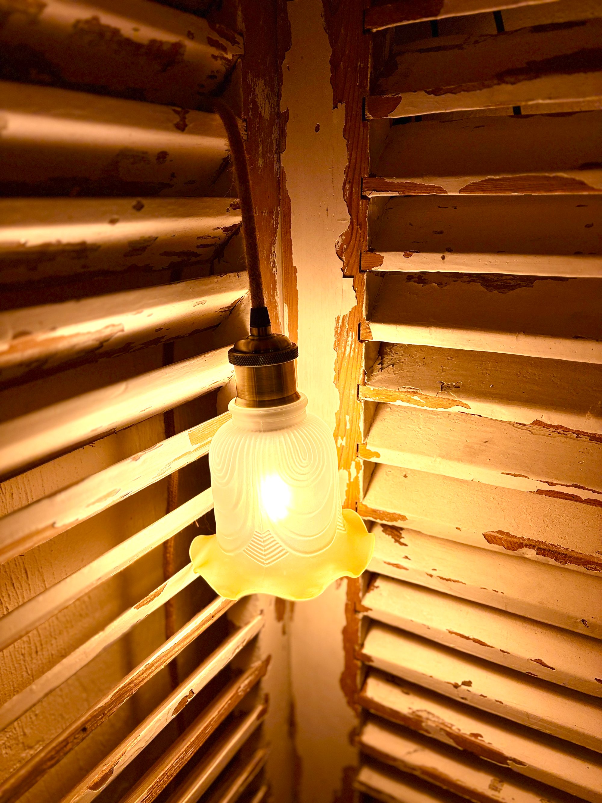 Une lumière chaude, un verre d’opaline délicatement travaillé, des reflets ambrés qui réchauffent aussitôt l’ambiance.