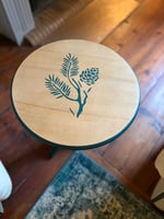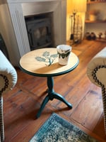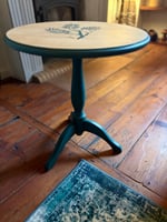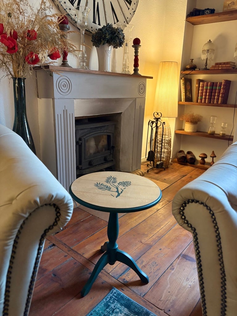 Petit guéridon ancien relooké dans un style naturel et chaleureux.